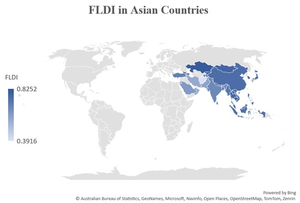 - Lower-Ranked Countries (FLDI < 0.7): South Asia and the Middle East