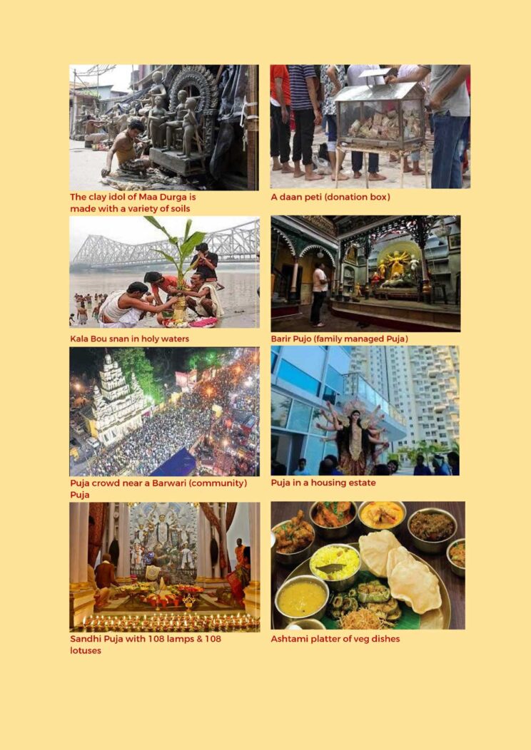 At this point, we may dwell on various styles of worship: (a) Community Puja or Barwari Puja; (b) Barir Pujo or family-run Puja & (c) Housing-er Pujo or Pujas in gated communities.