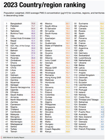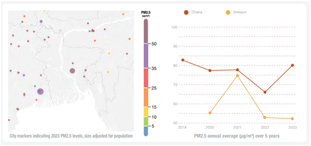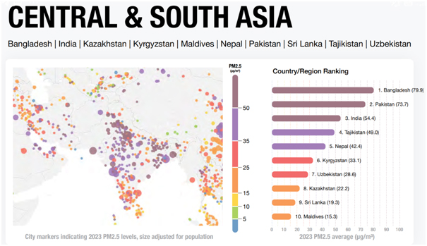 In 2020 Switzerland’s IQAir reported South Asia is the most polluted region in the world with Bangladesh, India and Pakistan together home to 42 of the 50 most polluted cities. A similar picture can be seen for 2023 as well.