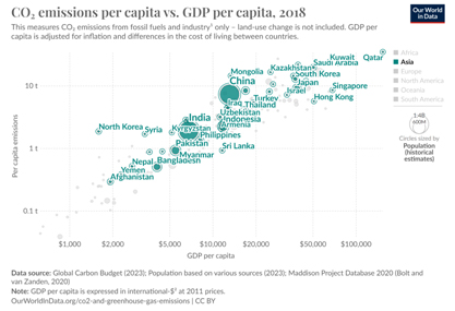 (source: Our World in Data) The cost of economic growth rates being higher than others, is the skyrocketing emission graphs of Asia.
