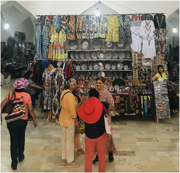 We finally returned to Tashkent to board our flight back home. It was indeed a memorable trip down the Old Silk Road, interacting with a warm and generous people, admiring the local handicraft, the bold ikkat textiles, the pretty suzani embroidery work, the vibrant, soft-as-silk camel wool carpets (wool from the camel’s neck), tasting the local food and savoring the local produce. How can I forget the glittering gilt work, and the rich blues of the mosaics and tiles. Oh, yes the Uzbeks love Indians, and Bollywood films, Bollywood songs, and Shahrukh Khan!