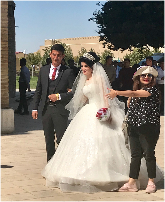 Shahrisabz-The country is large, how large one realizes when one drives from Samarkand to Bukhara. It took us almost eight hours. On the way, we stopped at the birthplace of Timur, an oasis in the desert. In its time, it was the second capital of the Timurid Empire and outshone Bukhara. At Shahrisabz, we finally got to see some ruins. A very old city, more than 2700 years old, it was known as Kesh in the Middle Ages. All that remains of the Ax Sarai palace complex is the gateway. In its heyday, the portal was 50 metres high. The gardens also serve as a destination for wedding shoots.The tent like dome of the Dor As Siadat necropolis shows the Mongol influence.