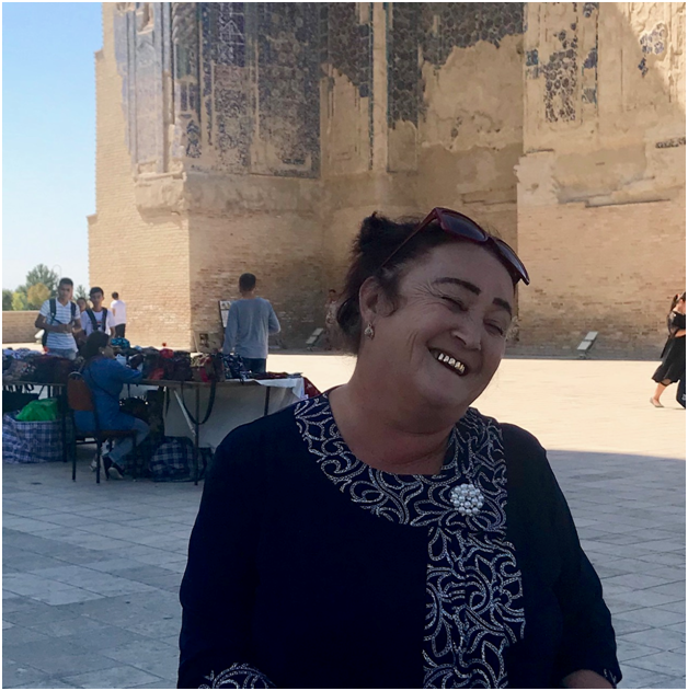 I noticed that Uzbek men love being photographed with Timur, as if that increases their virility! The hero of Uzbekistan is undoubtedly Timur, a 14th century conqueror who married a descendent of Genghis Khan and whose armies killed an estimated 17 million people on their rampage across Central Asia. He is the Father of the new nation, although our impression of him gleaned from history books as a terrifying man with a ginger beard, lame leg and stooping stature have been cast aside for a more aesthetically pleasing portrait! The present day Uzbeks are simple, warm and friendly. Their gold encased teeth, especially of the older generation, flash in welcoming smiles frequently. They were disconcerting to start with but then one got used to it.