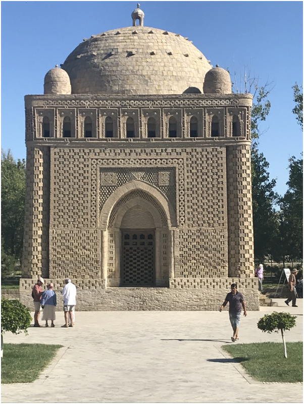 Samanid Mausoleum A structure made of intricately carved brick, dates back more than 1,000 years. It was only spared by Genghis Khan and his army of Mongol horsemen, because it had been inundated in mud from floods. Though it is a mausoleum it is open on all sides like a fire temple, has archaic corner columns, chains of pearls and protection with signs of magic squares, traditions associated with pre Islamic architecture.