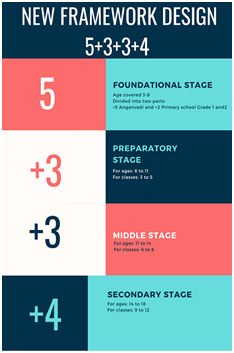 Formally, the pattern of 10+2 was followed, however, under the NEP, the pattern of 5+3+3+4