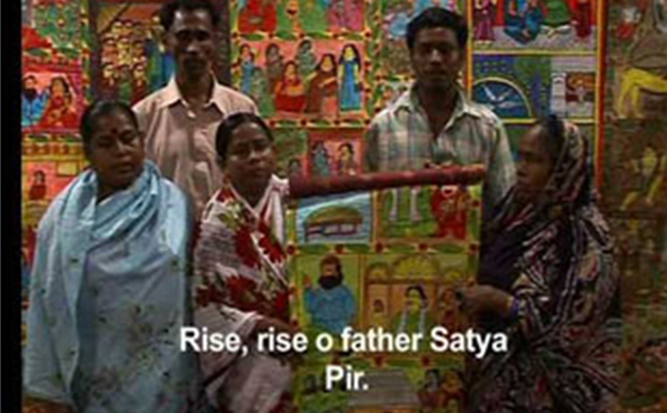 The cult of Satya-Pir, one of the popular beliefs and practices that crept into the fold of popular dimension of Islam through its long association with other religions and probably also due to the increasing number of converts, is a semblance of the syncretic culture of Bengal. In popular Hinduism, Satya-Pir came to be worshipped as Satya-Narayan and legends and rituals were woven around both the beliefs.Experts maintain that the Muslim Satya Pir and the HinduSatyanarayan Puja essentially represent the same beliefs and rituals. A century ago in Bengal, the ritual was mainly performed by Hindu women and was interchangeably called Satya pir Puja or Satya Narayan puja and some Muslims also performed the Puja. In Bengal folklore, imageries of Narayan and Pir merged in such a way as somewhere He is addressed as Satya Narayana, implying that he is an avatar of Krishna, while yet another tale narrates how Satya Pircame from Mecca, thus emphasizing on his Islamic roots. In the Satya Narayan Panchali, two traditions are prominent. According to the first, the Hindu god Shri Hari appears in the guise of a faqir/mendicant before a poor Brahmin and instructs him to make offerings to Satya-Narayana; the Brahmin obeys and becomes rich. According to a second tradition, a merchant is blessed with a female child with the blessings of the Satya-Narayana. When she grows up and is married, the merchant takes his son-in-law on a voyage where the merchant apparently gets into trouble as he neglects the worship of Satya-Pir. But the merchant’s wife was a devotee of Satya-Pir, so he is eventually saved. Again, while returning, they were prone to be drowned as the merchant’s daughter being eager to see her husband, forgot to worship Satya-Pir. Once she realized the significance of the worship, they all get out of trouble. These legends made the Satya-Pir (or Satya-Narayana) a household name. The first book on Satya-Pir called Satya-Pir Kavya is attributed to Shaikh Faizullah and is believed to have been written between1545 and 1575 AD. Some scholars think that Sultan Alauddin Husain Shah (1494 to 1519 AD) was the originator of the Satya-Pir movement, though there is no corroborating evidence. In Orissa, the cult made an entry through Sufism where till date Hindus worship Satyanarayan and Pir together. Satya pir is also worshipped by certain Buddhists in Bangladesh.